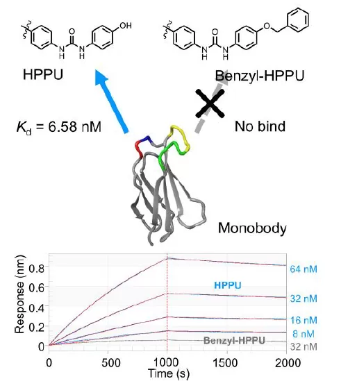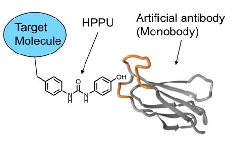 人工的にデザインした低分子リガンドである1-(4-hydroxyphenyl)-3-phenylurea(HPPU)に特異的に結合する人工抗体(Monobody)候補を独自技術のTRAP法を用いて1013の多様性をもつ人工抗体ライブラリから選択した。