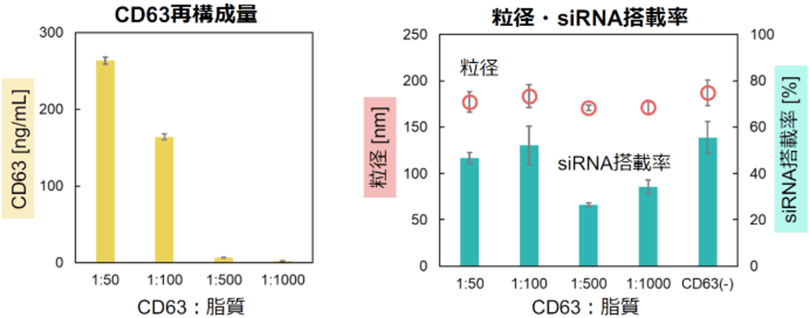 生体内で細胞から分泌される細胞外小胞のうちエクソソームと称されるものは、粒径30~200nm程度の非カチオン性脂質ナノ粒子であり、内部に核酸やタンパク質を内包し小胞膜には膜タンパク質が存在している。この膜タンパク質はエクソソーム粒子の細胞間輸送に関わっており、その種類や組み合わせによって特定の臓器や細胞にエクソソーム粒子が多く輸送されることが知られている。そのため、エクソソーム粒子は診断マーカーとしての利用が期待されている。例えばがん細胞から分泌されるエクソソーム粒子は特徴的な成分組成になっていることが知られており、エクソソーム粒子を分析対象としたリキッドバイオプシーは低侵襲ながん診断方法として期待されている。