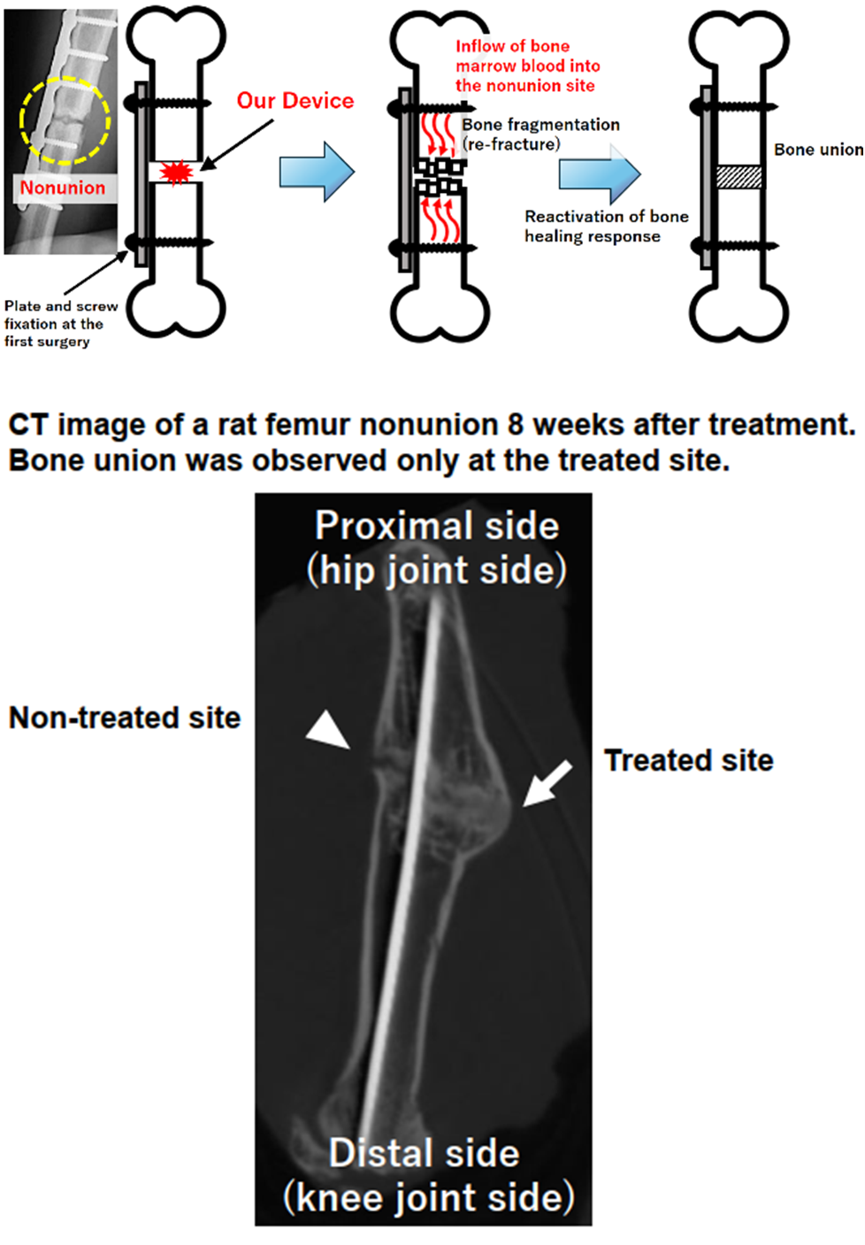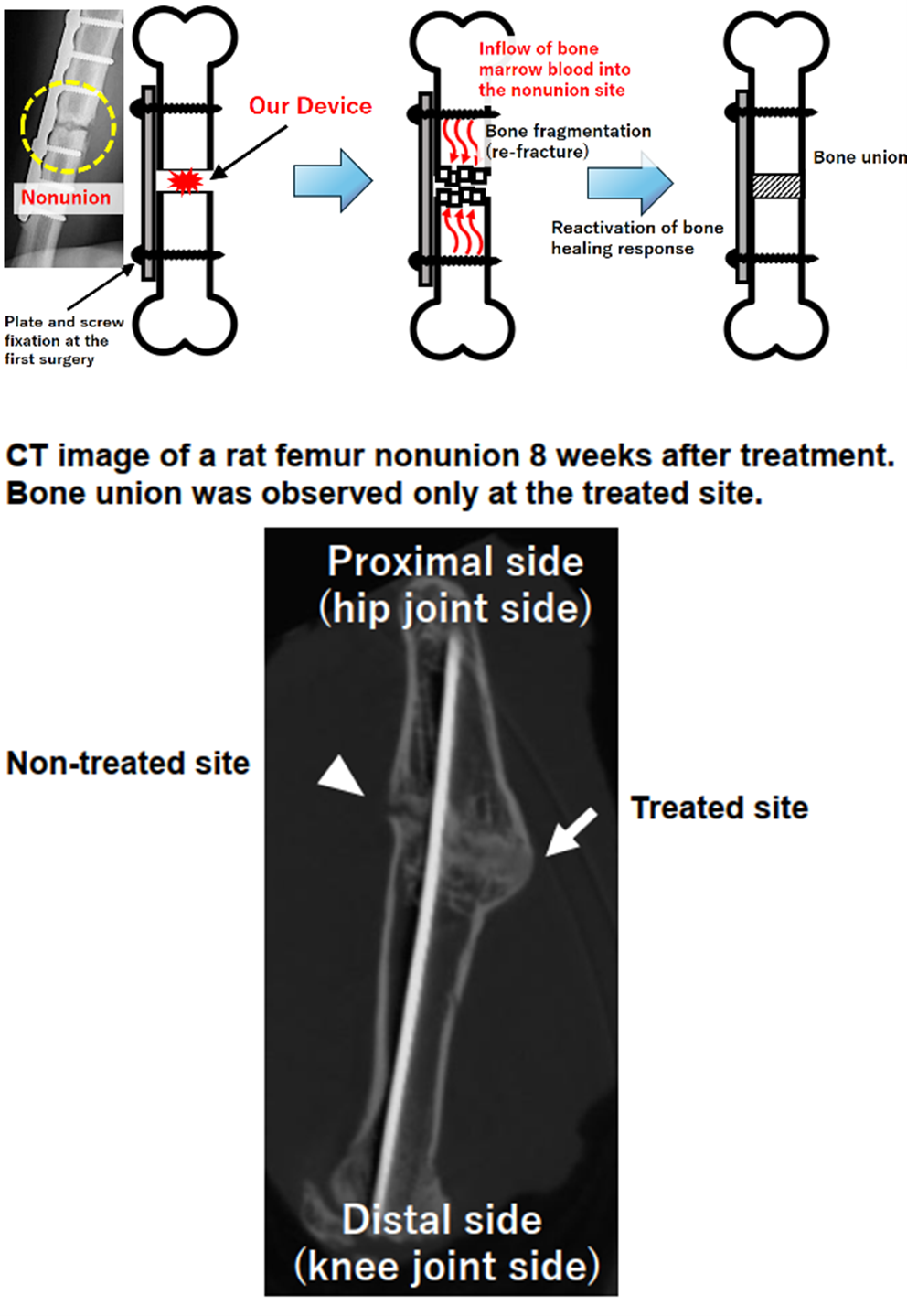 - 試作デバイスを用いてラット大腿骨偽関節モデルで骨癒合が得られることを確認済