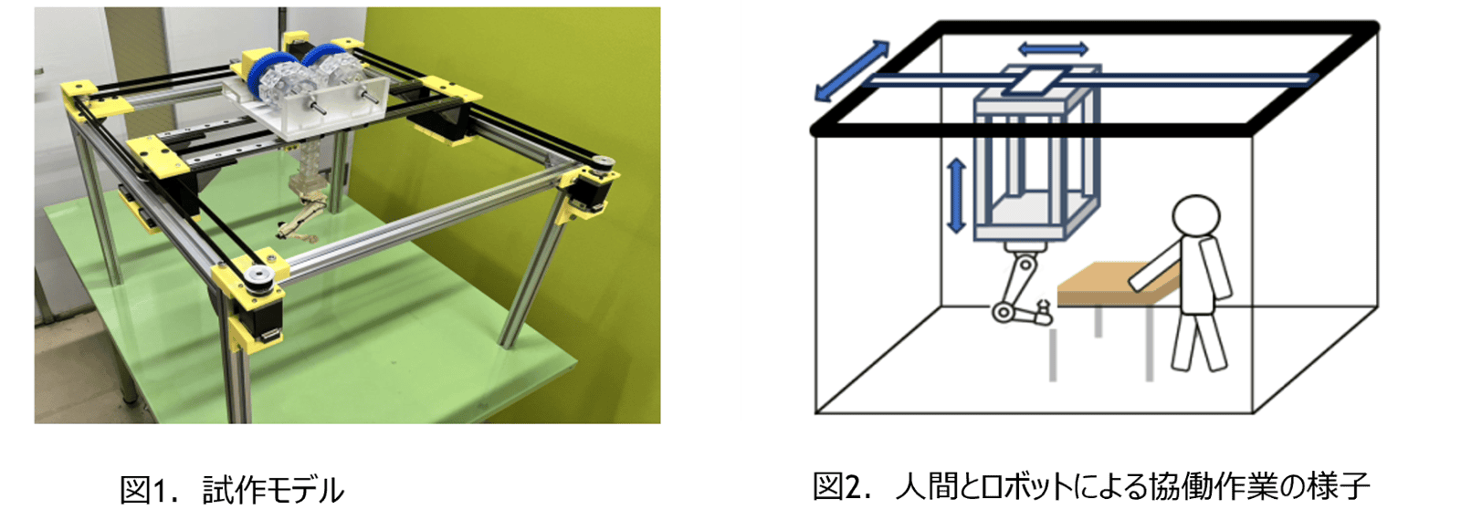 - 水平移動機構と鉛直伸縮機構を組み合わせた、省スペースな吊り下げ型空間移動マニピュレータ