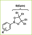 本技術では、ピナコールの4つのメチル基をエチル基に置換した「Epin(1,1,2,2-テトラエチルエチレングリコール)」を新たな保護基とすることで、“ArB(Epin)” という新規芳香族ボロン酸エステルを開発した。