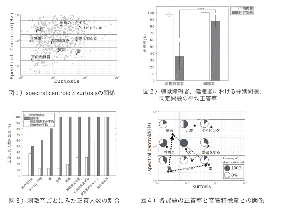 ・音響特徴量の定量化: スペクトル重心と波形のエンベロープの尖度を用いることで、刺激音の音響特徴量を正確に定量化可能