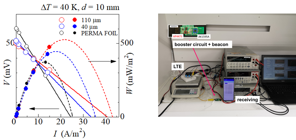 - IoTセンサー用の自立分散電源や、室温付近の廃熱の電力変換、体温を利用したウェアラブルデバイス用の電源などに用いられる