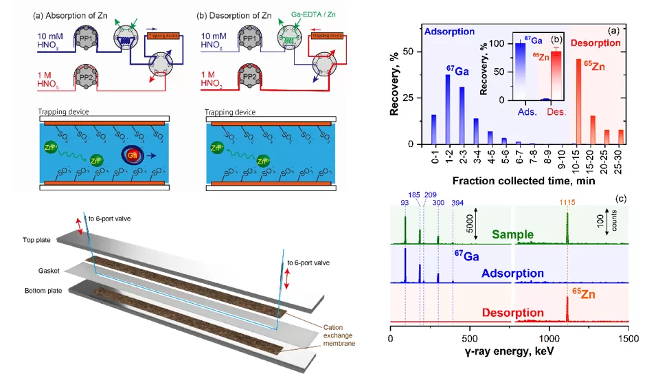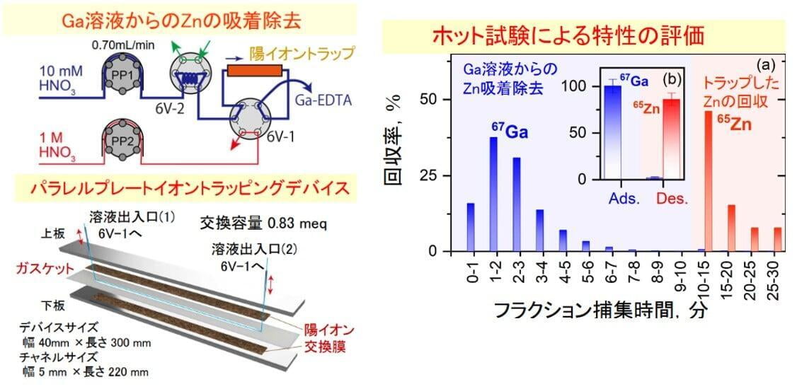 - 現段階: 基本原理を確認し、本デバイスによる実験可能な放射性同位体(Ga-67/Zn-65)で、分離・精製・回収性能を実証した段階です。