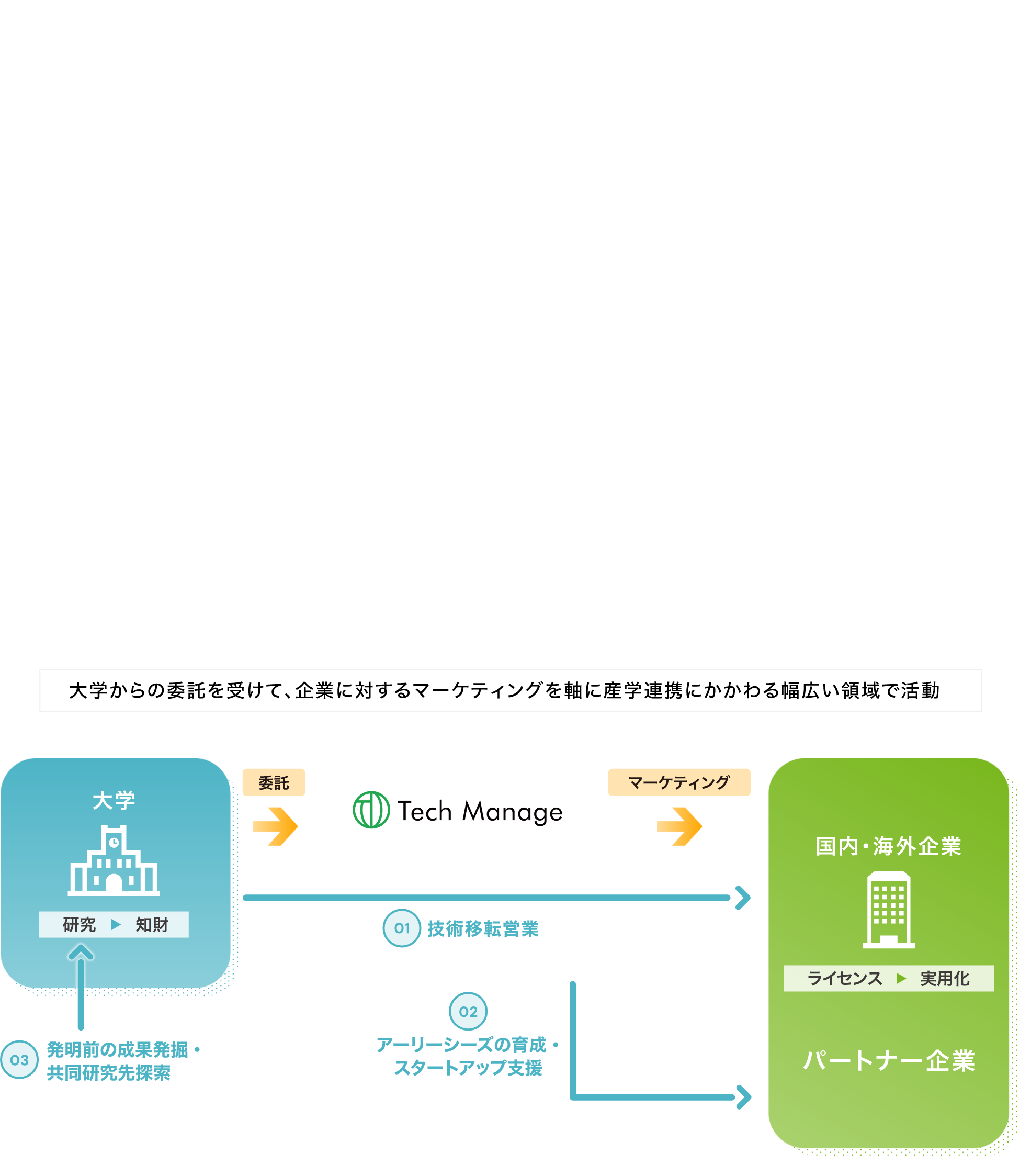 テックマネッジは大学・研究機関の研究成果の活用を促進する