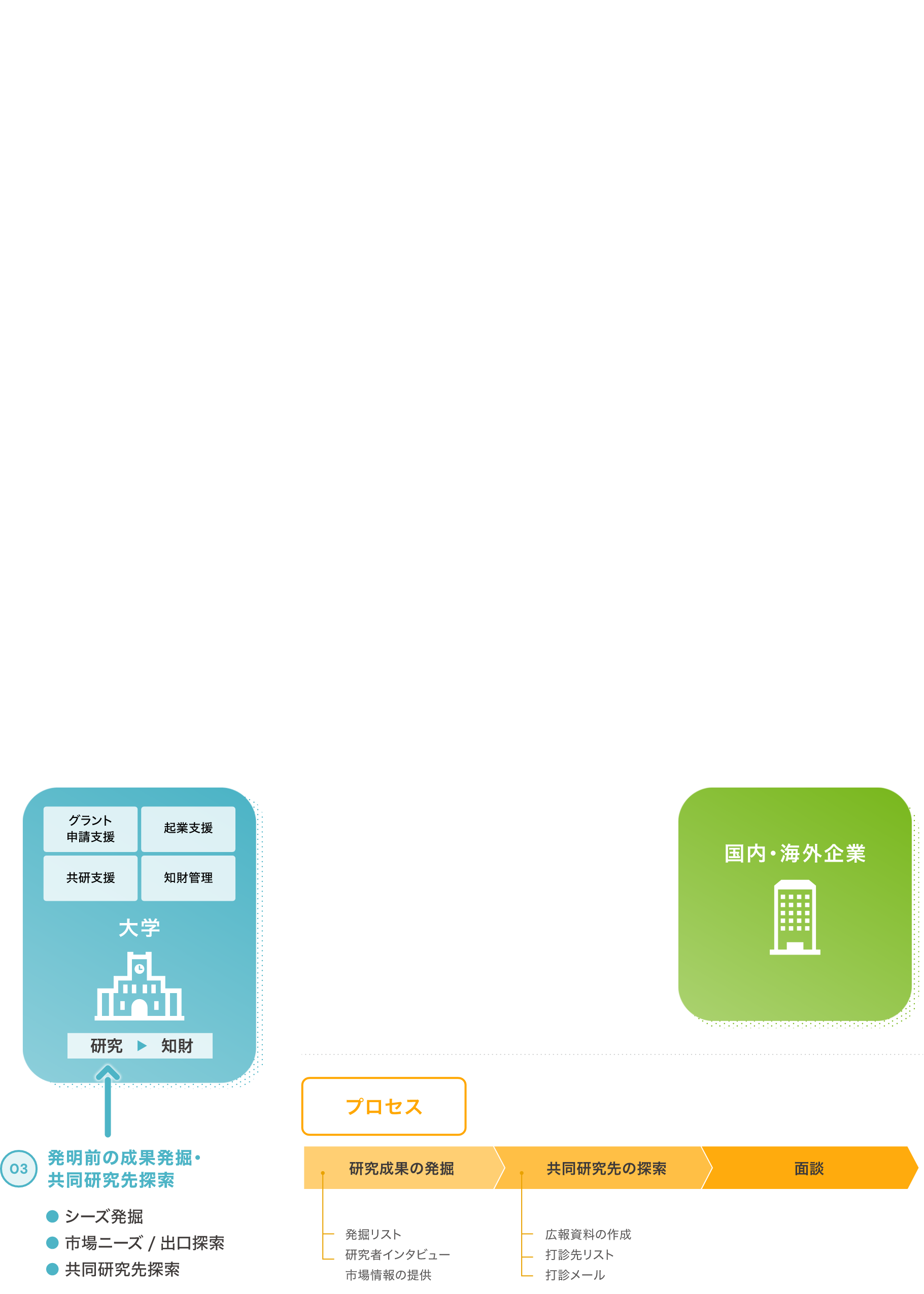 発明前から大学の有望な研究を発掘し、共同研究先を探索