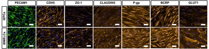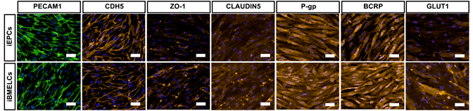 発明者らはBMECが発生学的に血管内皮前駆細胞(EPC)に由来することに着目し、iPS細胞由来血管内皮前駆細胞 (iEPCs)からのiBMELCsへの分化誘導方法について、分化誘導の最適化を行った。iPS細胞からの誘導したiEPCsに対してB27 supplementとTGFβ阻害剤(A83-01)、Laminin511断片を添加することでバリア機能が亢進したiBMELCsを誘導することに成功した。