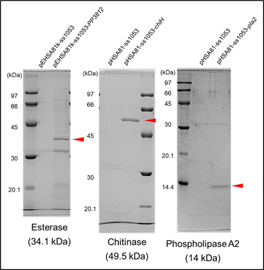 - Pullulanase, Esterase, Chitinase, Phospholipase A2, Amylase などの発現を実証済み