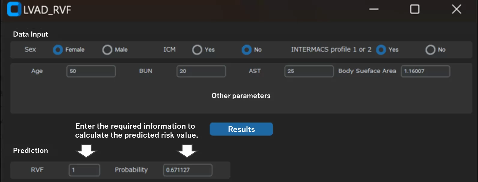 LVAD術前介入シミュレーター:LVAD装着手術前に術後RVFリスクを予測し 、さらに術前介入によるリスク変化もシミュレーションすることで術前管理を最適化する(右図)