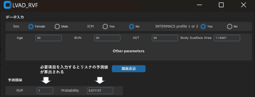 本プログラムは、これらの課題を解決するために開発された循環器疾患向けAI診断予測ツールであり、大阪大学や国立循環器病研究センターから提供された長年にわたる高品質な実臨床データを学習に用いている。その結果、LVAD後のRVFやIE術後の院内死亡・長期挿管といった重大事象に対し、従来の予測法を凌駕する高い予測精度を実現した。