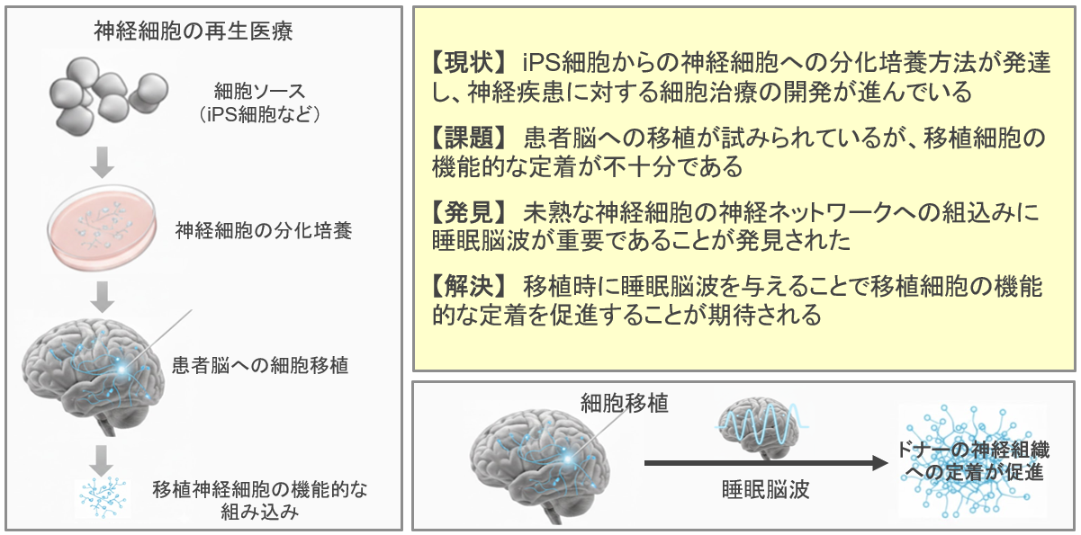 再生医療の効果最大化: 移植細胞を神経回路へ能動的に編入させることで、機能発現と治療効果の促進が期待できる。